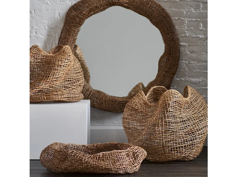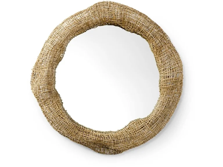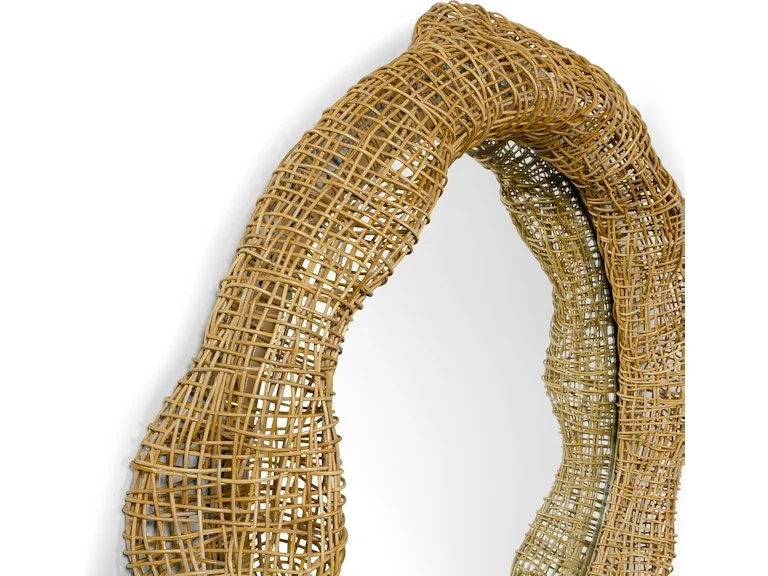 moreMirror is framed in a hand-formed split rattan open weave in a natural finish hand-formed over a powder coated metal frame. Mirror includes metal cleat for mounting. Coordinates with the Andorra collection.