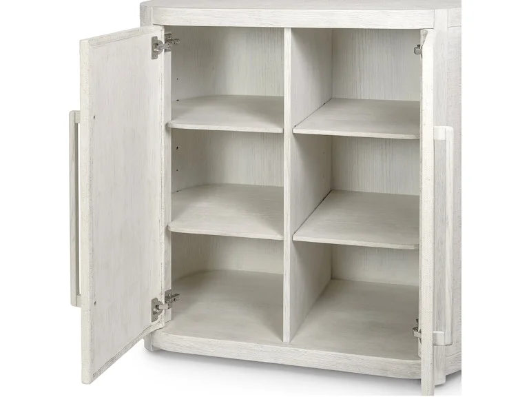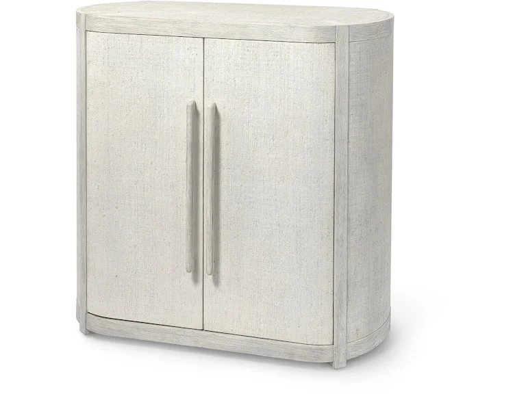moreSolid oak hardwood frame and handles feature an inlayed raffia top, sides and door fronts all in a whitewash finish. The inside compartment features two adjustable shelves. Coordinates with the Astoria collection.