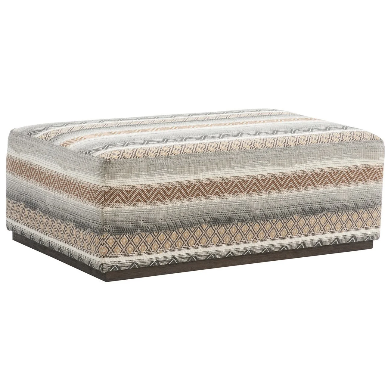 The Barclay Butera Upholstery Sterling Rectangular Cocktail Ottoman with Wood Base, made by Barclay Butera,