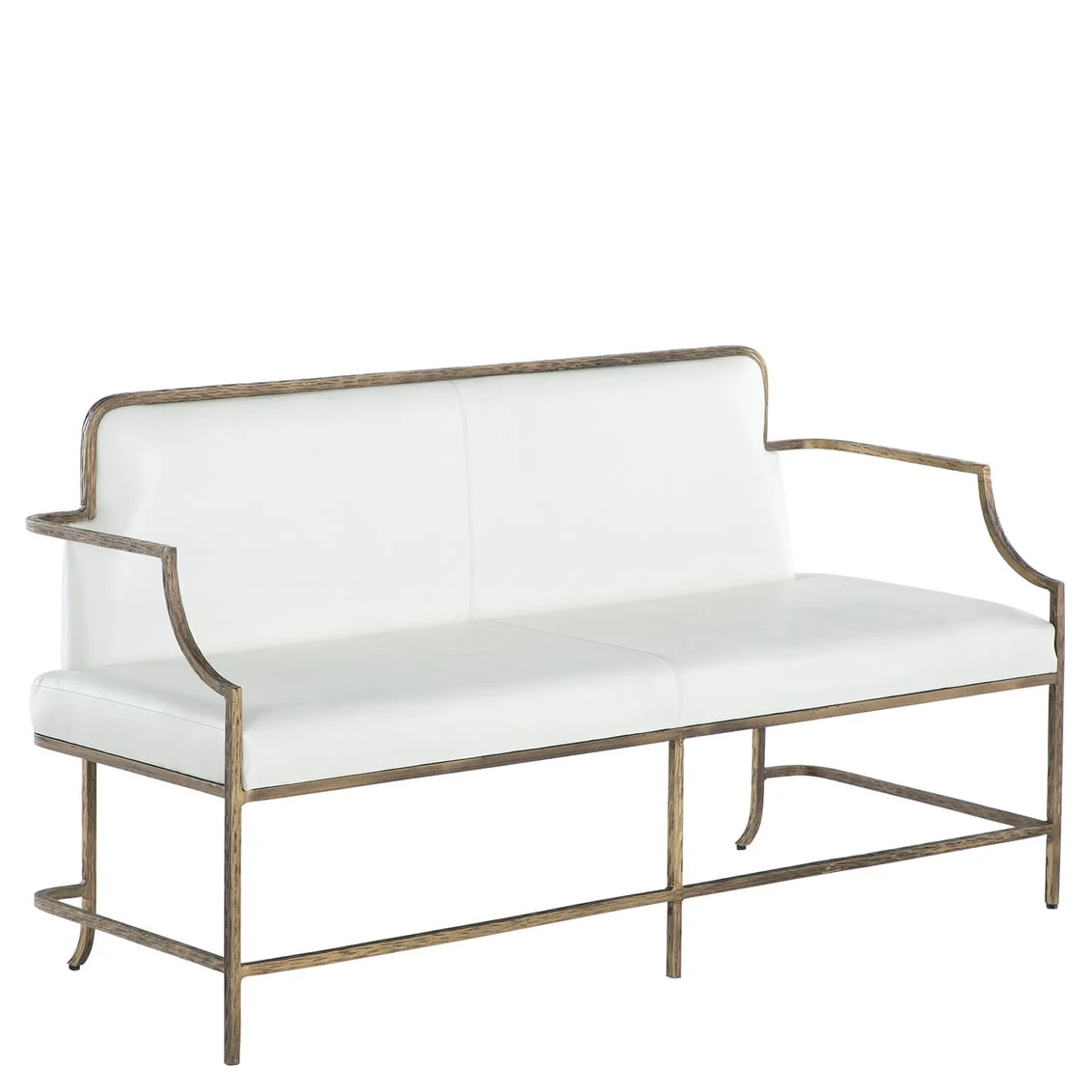A glamorous addition to the Gabby line-up, the Vanderbilt Bench has a crisp cloud hair-on-hide seat cushion fitted into a clean lined frame in a forged warm champagne finish.