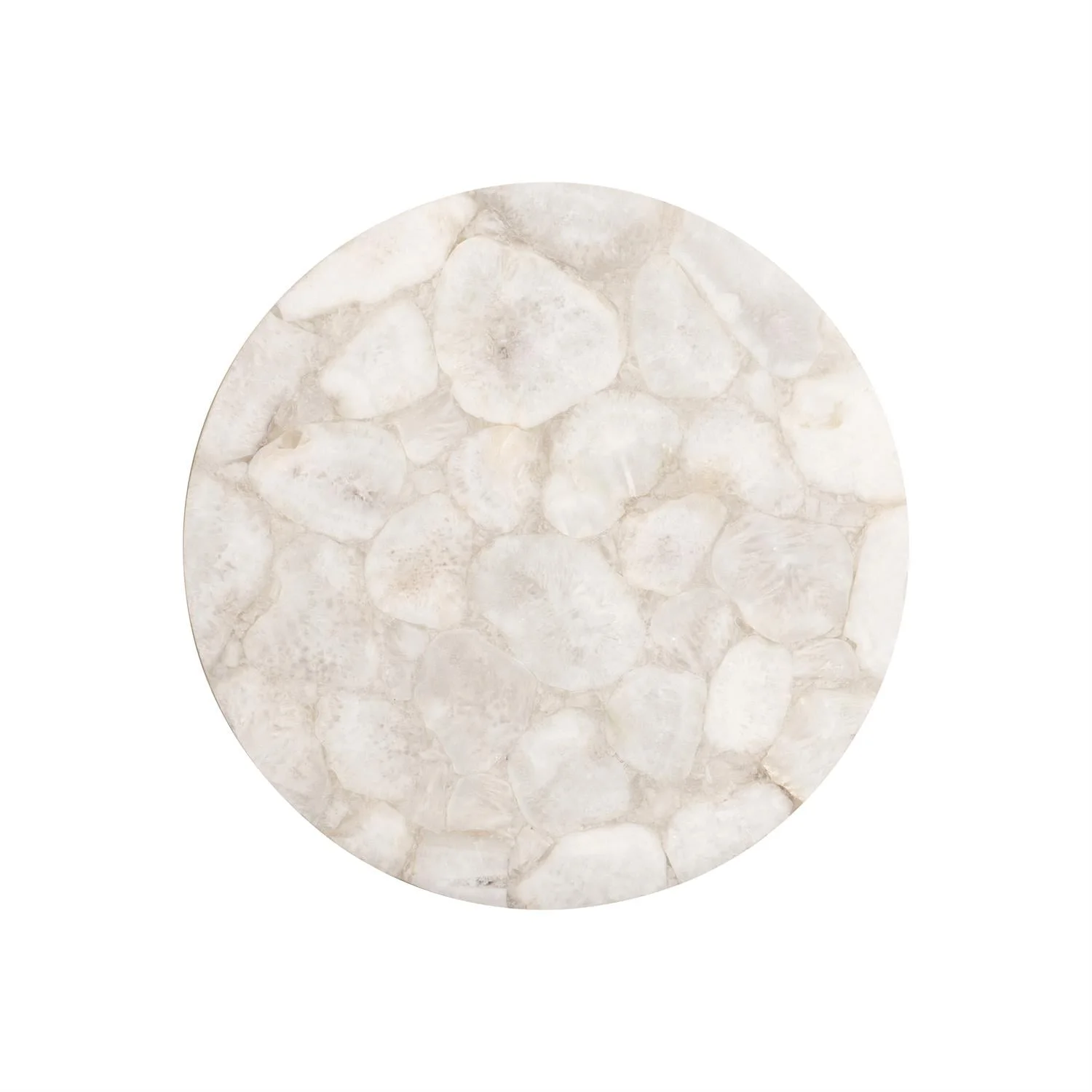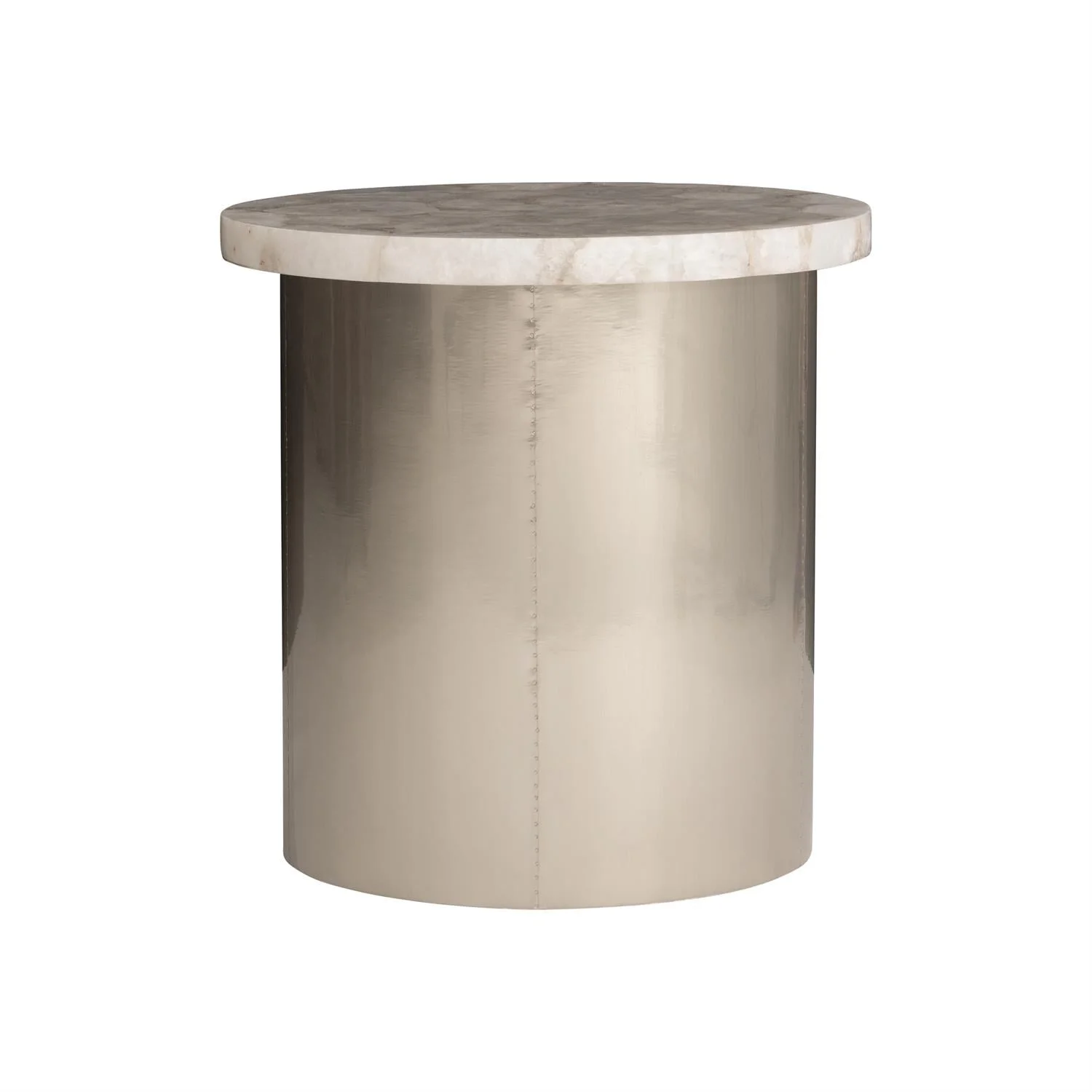 moreThe soft shapes of cut white agate form a beautiful and sophisticated top on the Shimla side table. The glow of the marble is enhanced by a canister style metal base in the German Silver finish. The stunning result balances organic and modern styling.