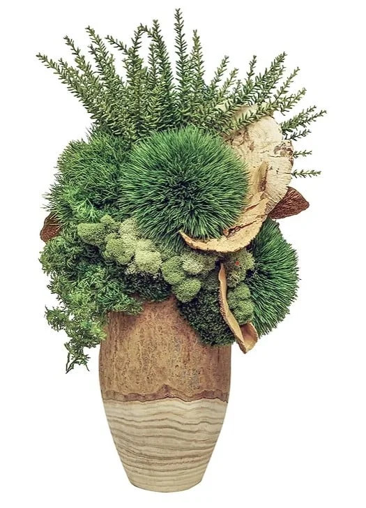 Tall Wood Vase W/ Botanicals/Natural Mushrooms