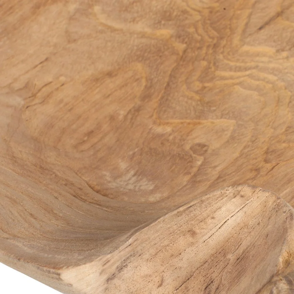 moreEmbrace the raw beauty of nature with this handcrafted teak wood bowl. Featuring an organic, live-edge design, each piece is uniquely shaped by the tree's natural form. This bowl brings warmth, character, and timeless elegance to any space. Because each is individually handcrafted, natural variation will occur from piece to piece. Safe for outdoor use.