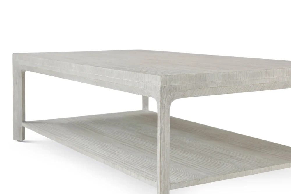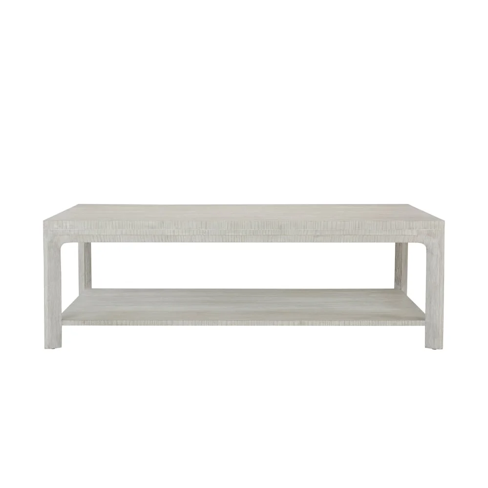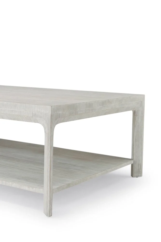 The Breeze Pine Cocktail Table with Shelving, made by Theodore Alexander,