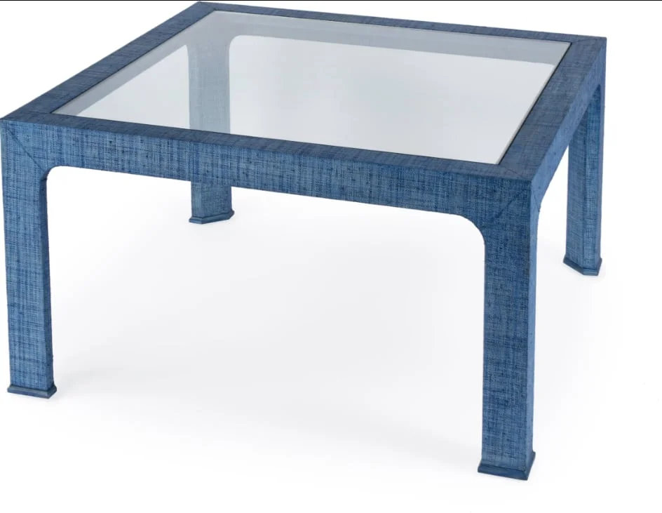 The Chatham Chatham Coffee Table, Blue Raffia, made by Butler Specialty Company,