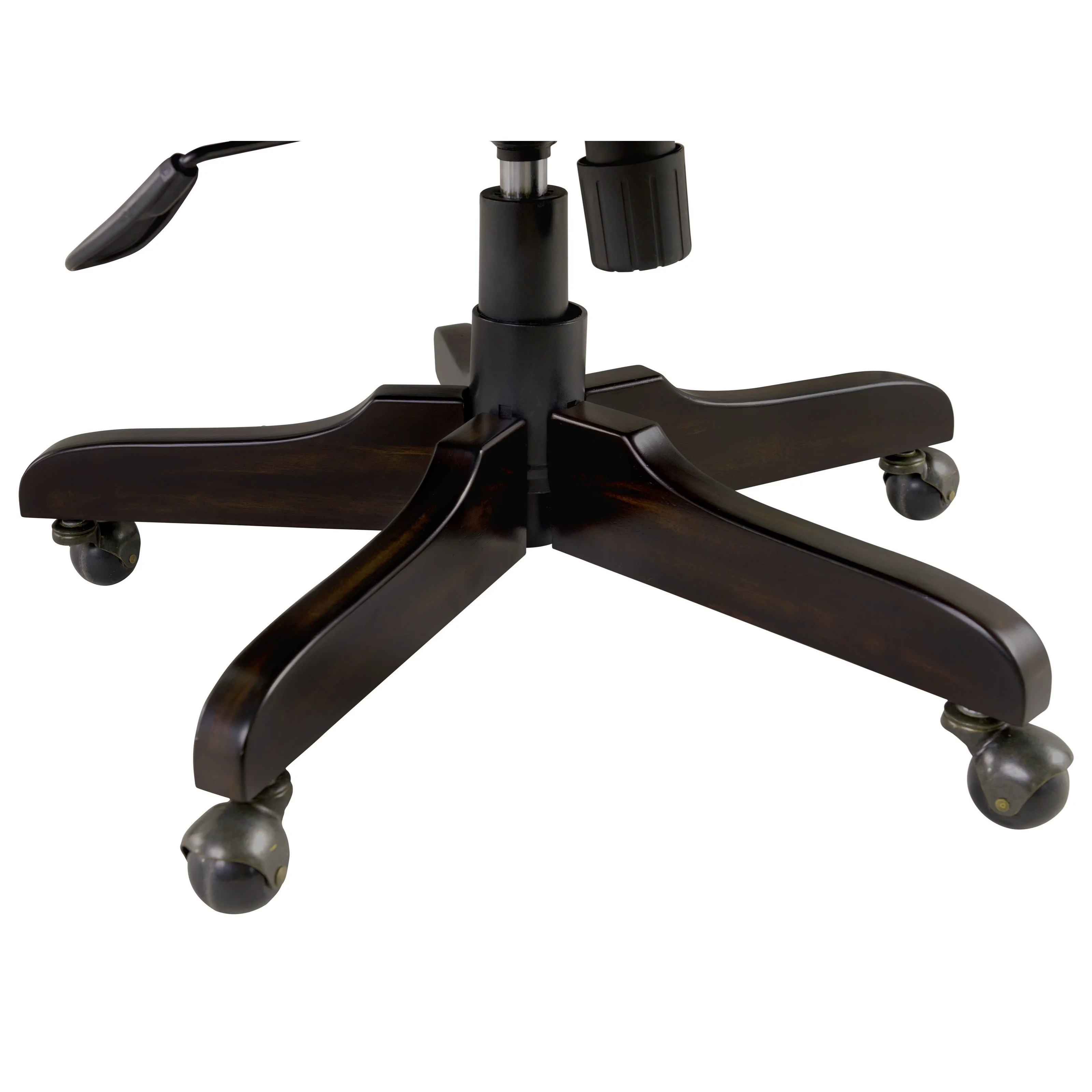 moreGet your work done effectively and easily with this traditional executive chair. This piece offers a lever that allows you to adjust the chair height to perfectly suit your needs. Also featuring a swivel base and casters, this chair enables you to get to and from other places in your office space with ease.