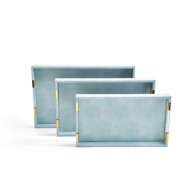 Aqua S/3 Decorative Tray w/ Acrylic Handles