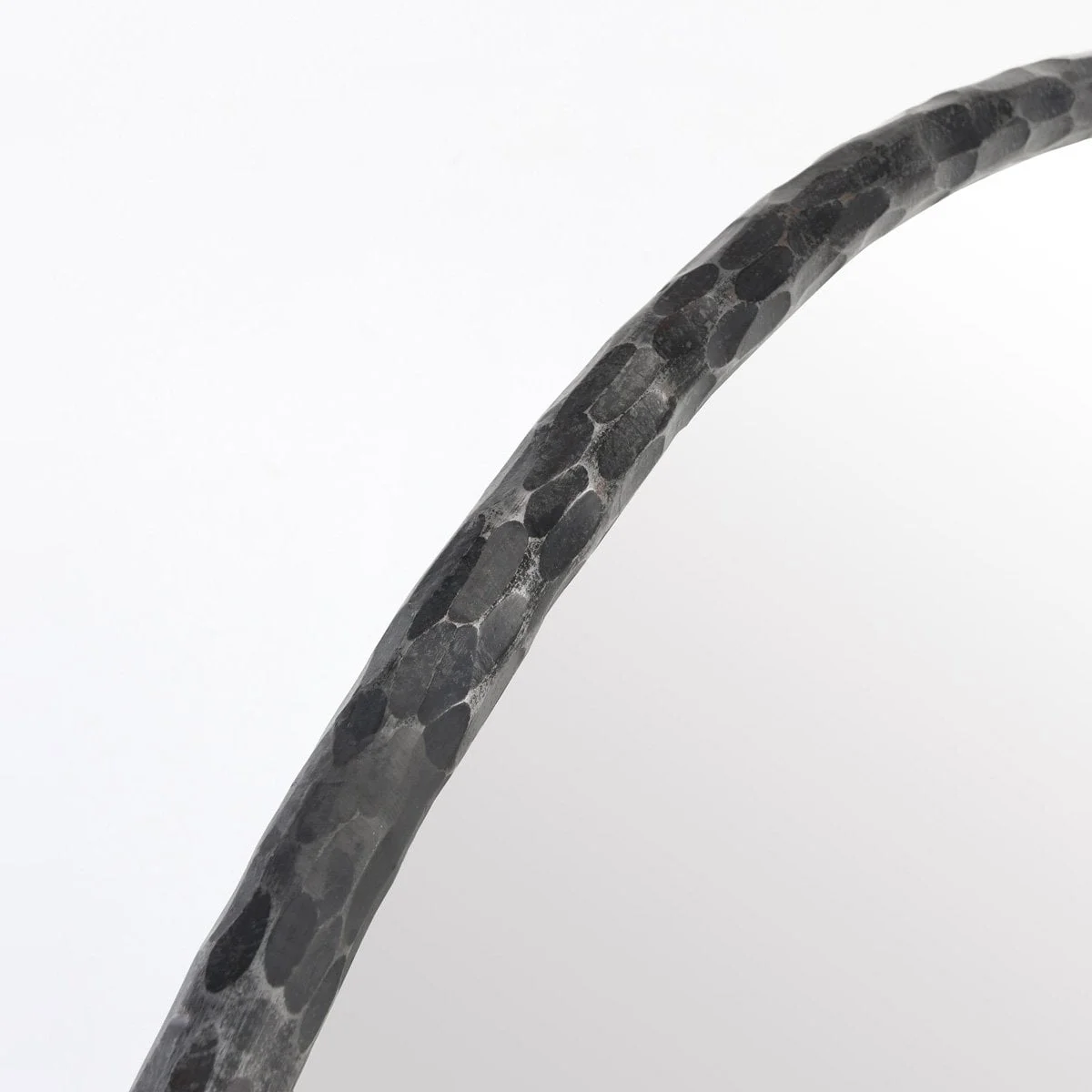 Contemporary 51" Round Wall Mirror with Hammered Metal Trim