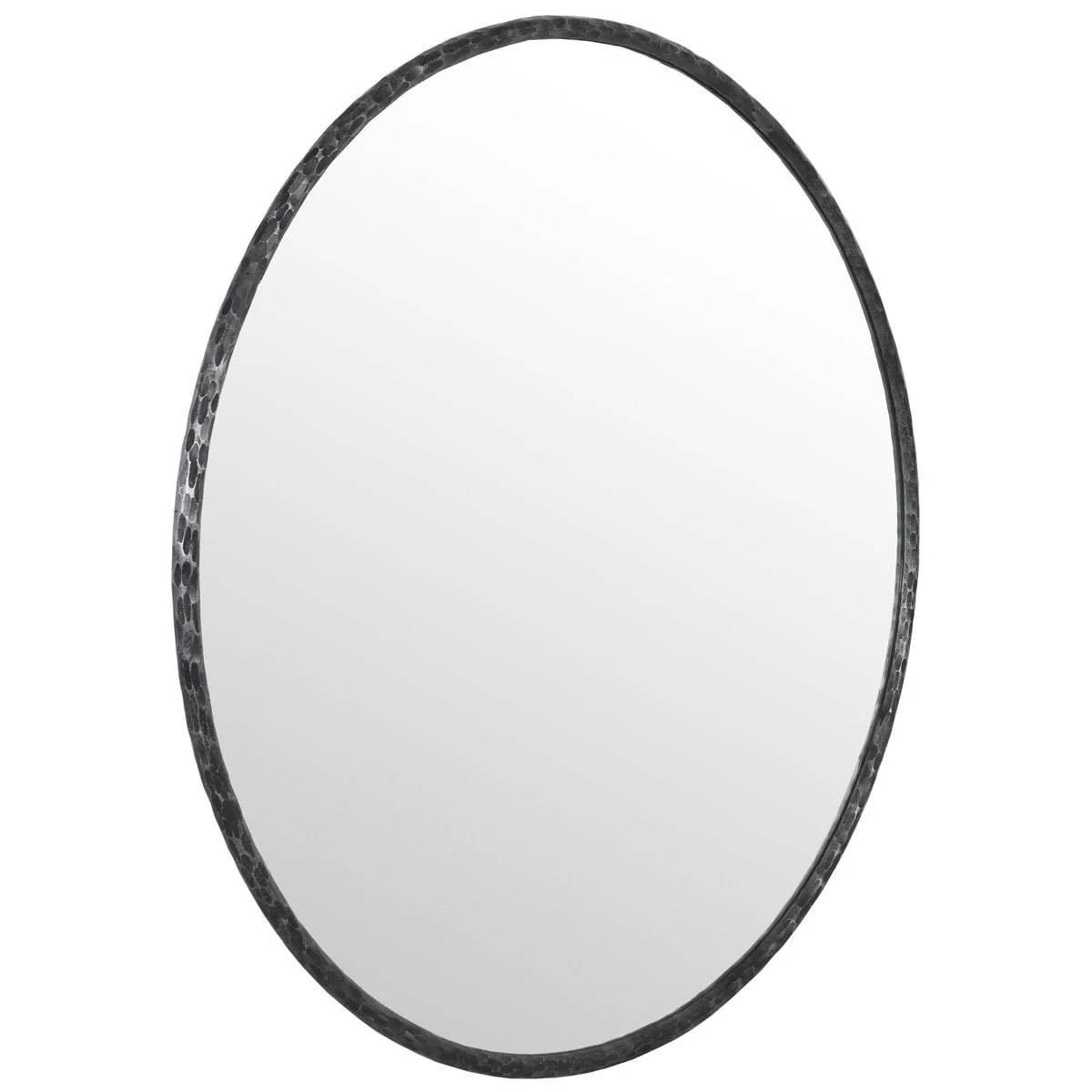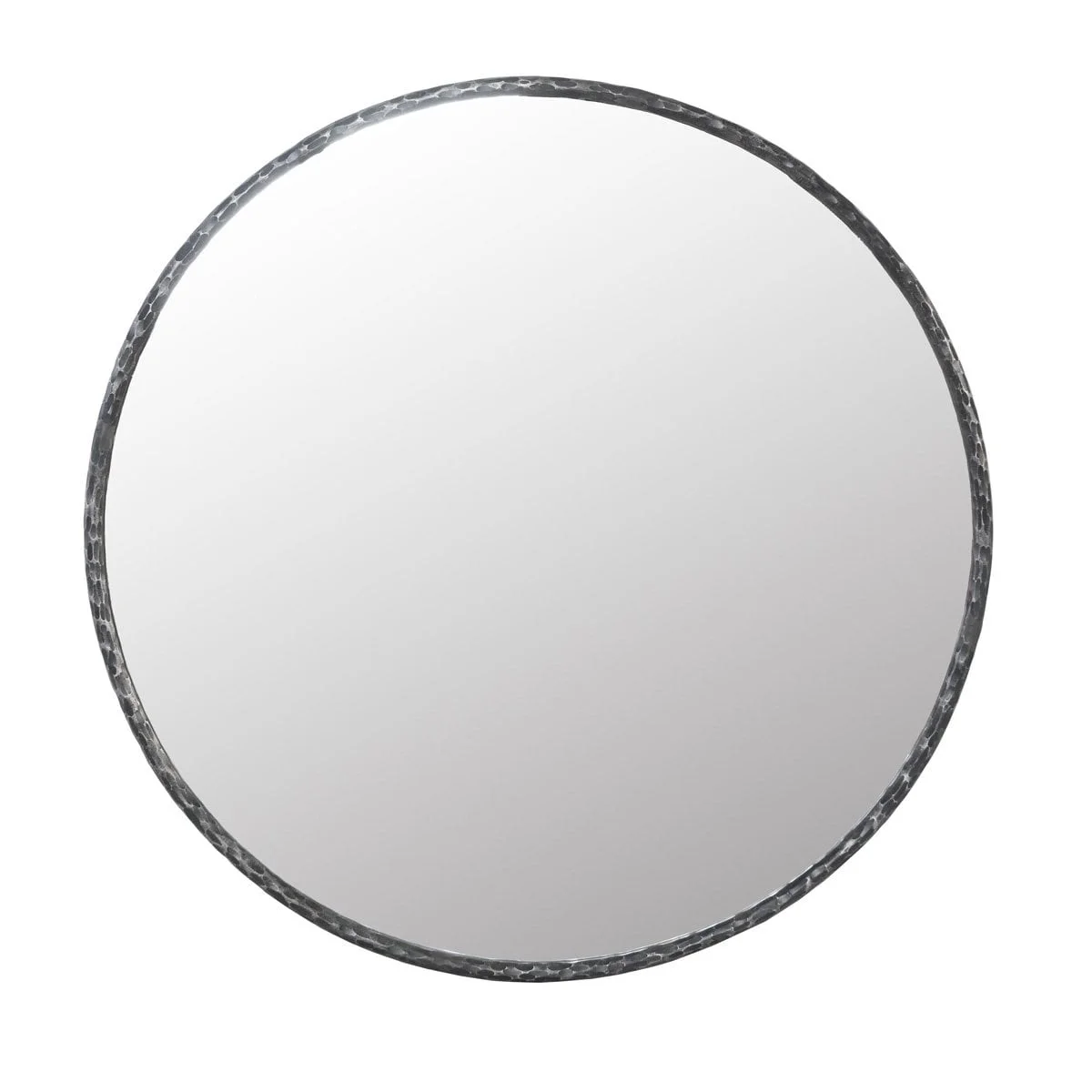 The Decor Contemporary 51" Round Wall Mirror with Hammered Metal Trim, made by Classic Home,
