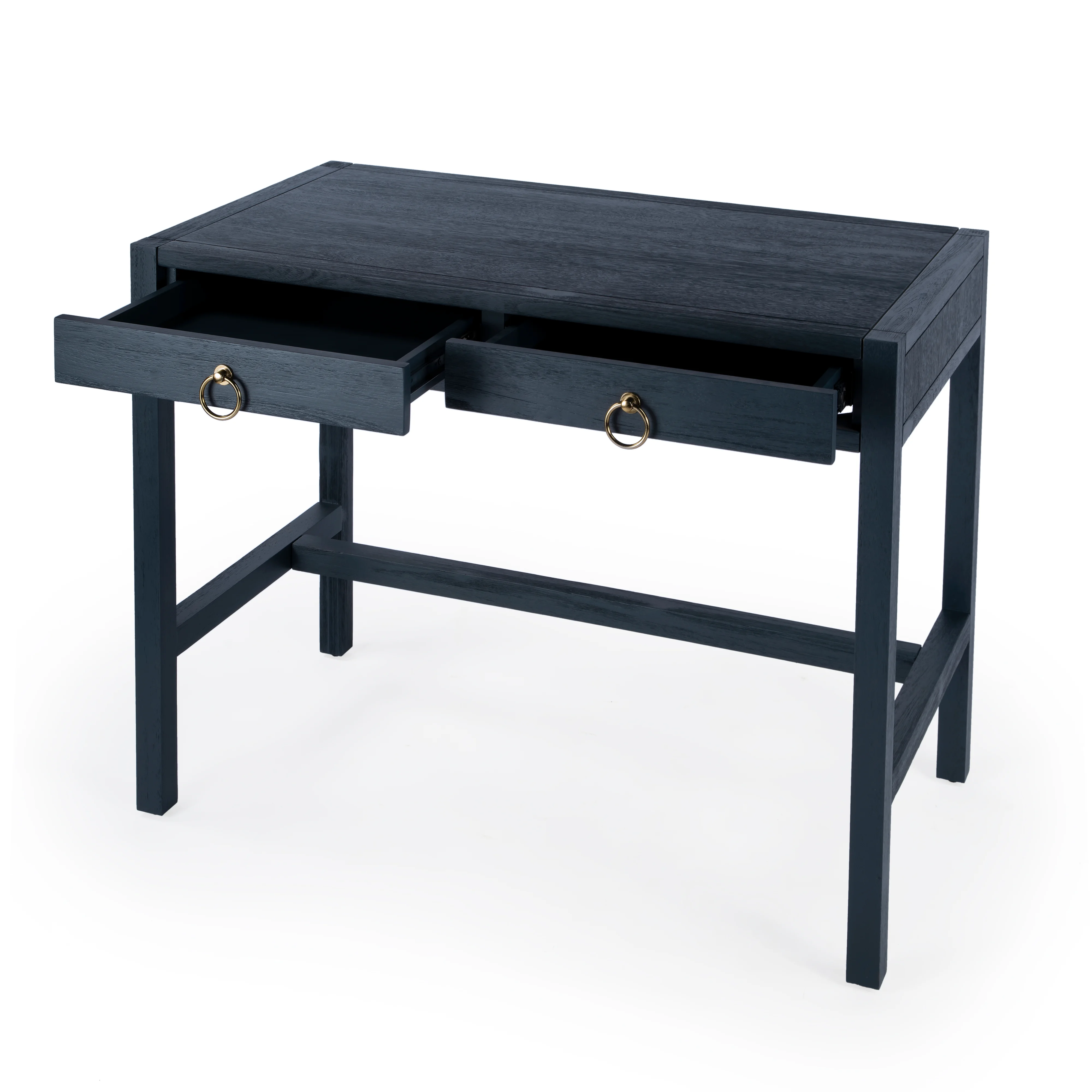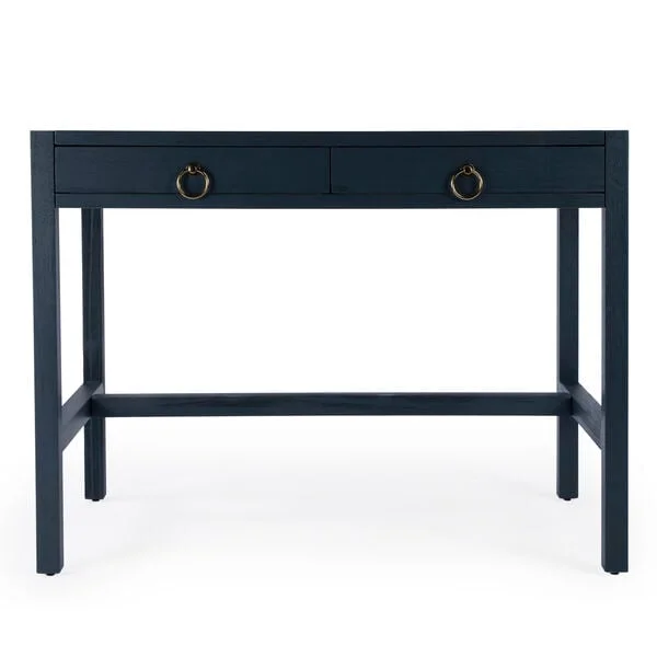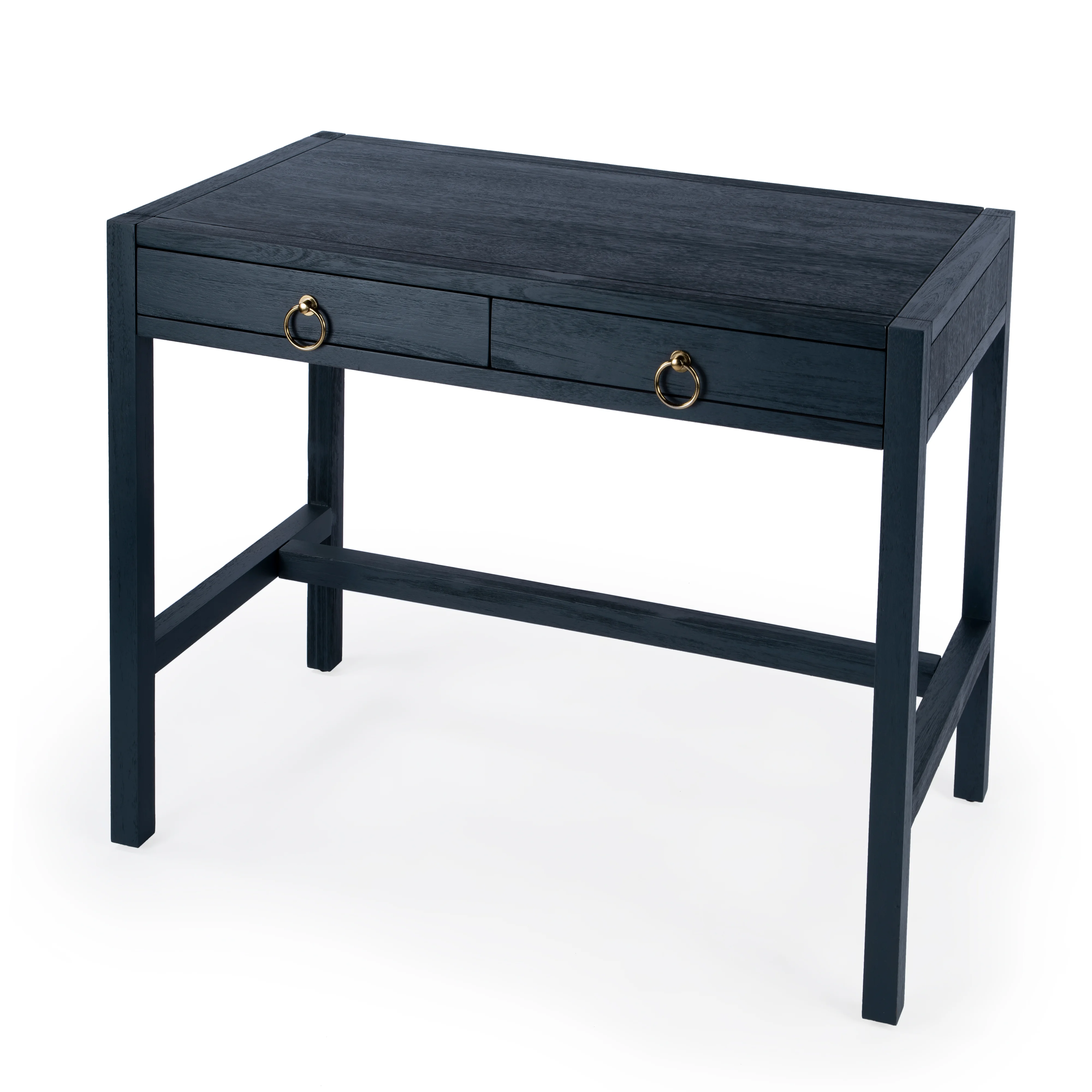 moreThe minimalist design of this stylish Butler Specialty Company desk makes it an ideal addition in any contemporary space. Crafted from acacia or pine wood solids and engineered wood products, it features two drawers with ring pulls, for a hint of glam, and ball bearing glides for easy opening and closing. Great for use in an office, living room or bedroom, and it is scaled for smaller spaces. Available in multiple finish selections.