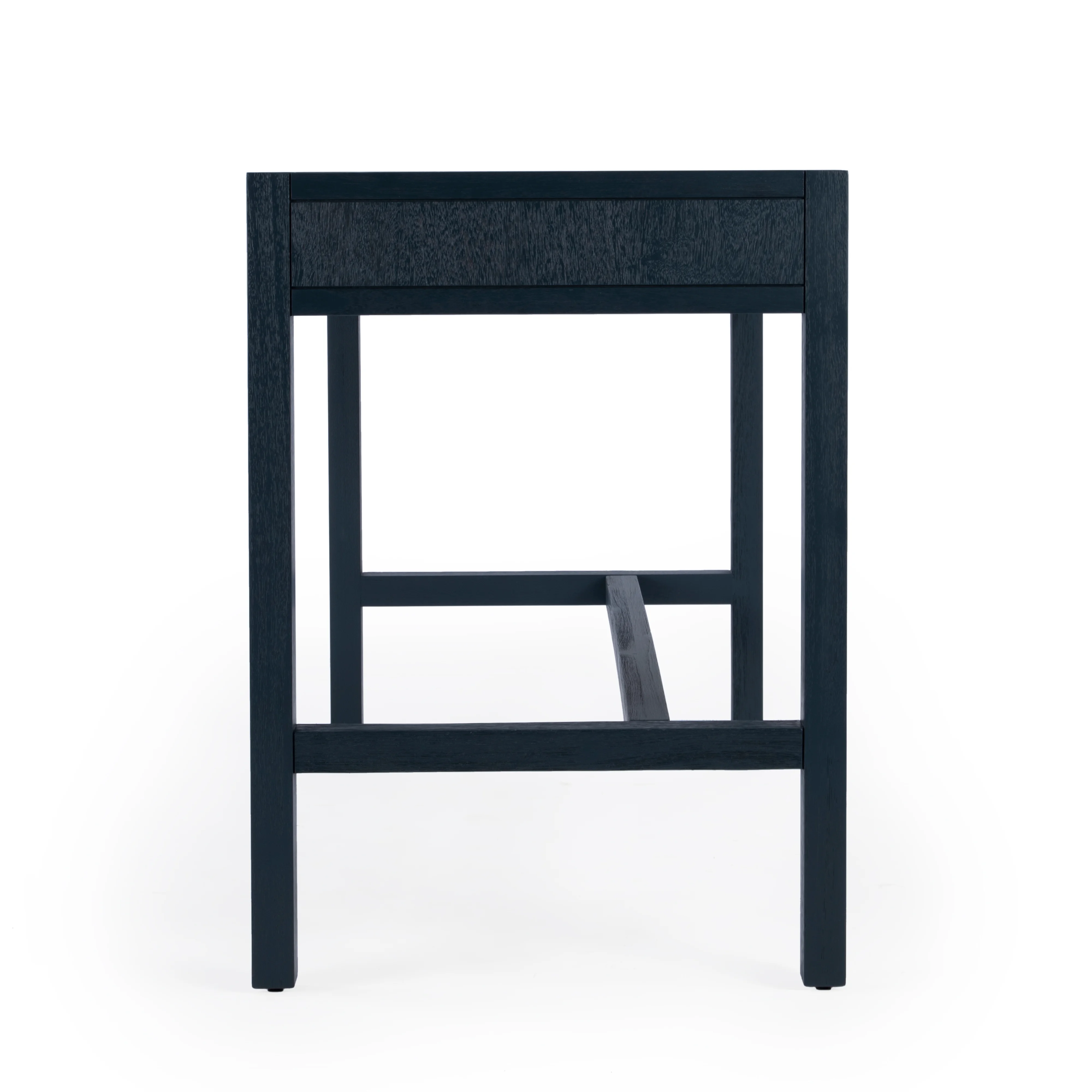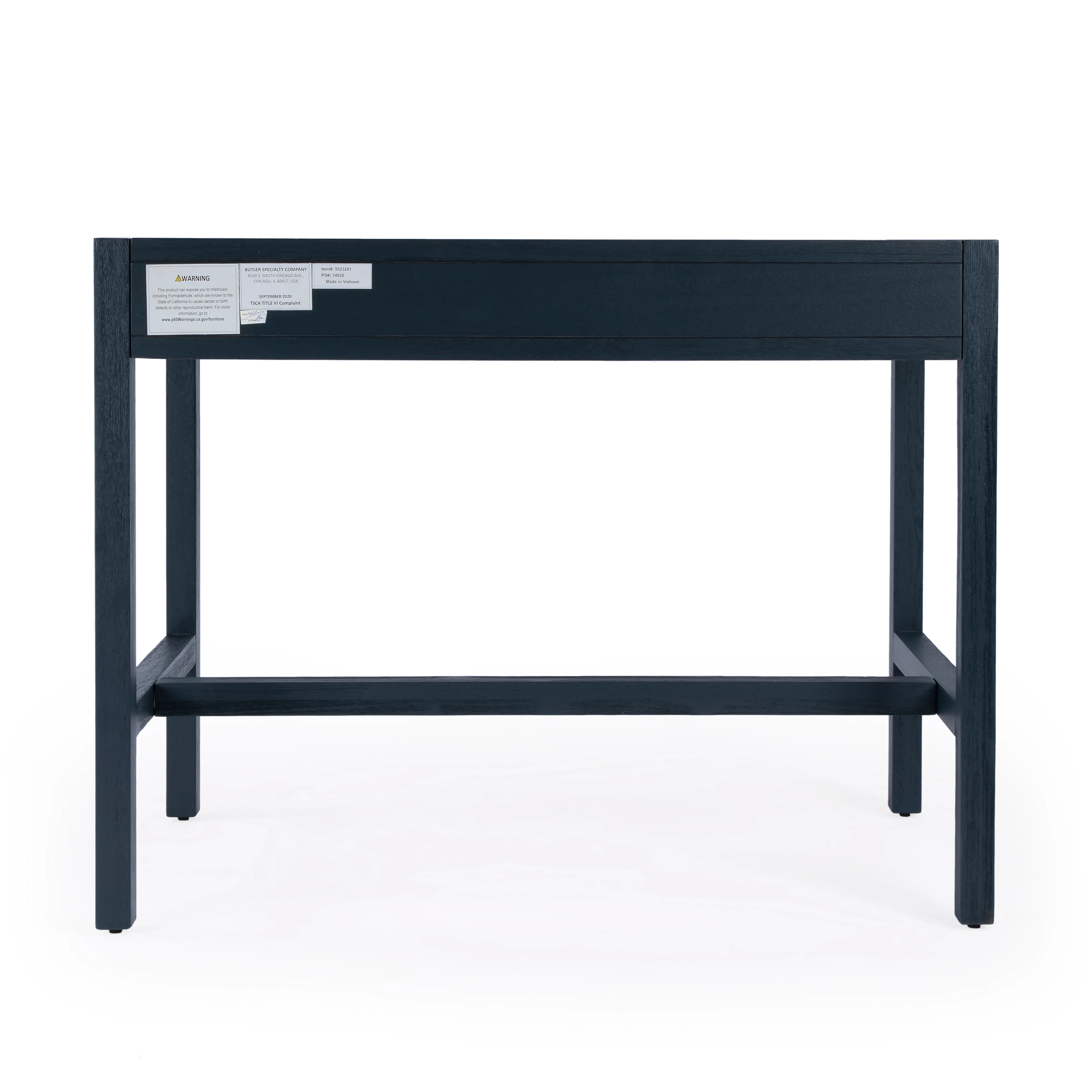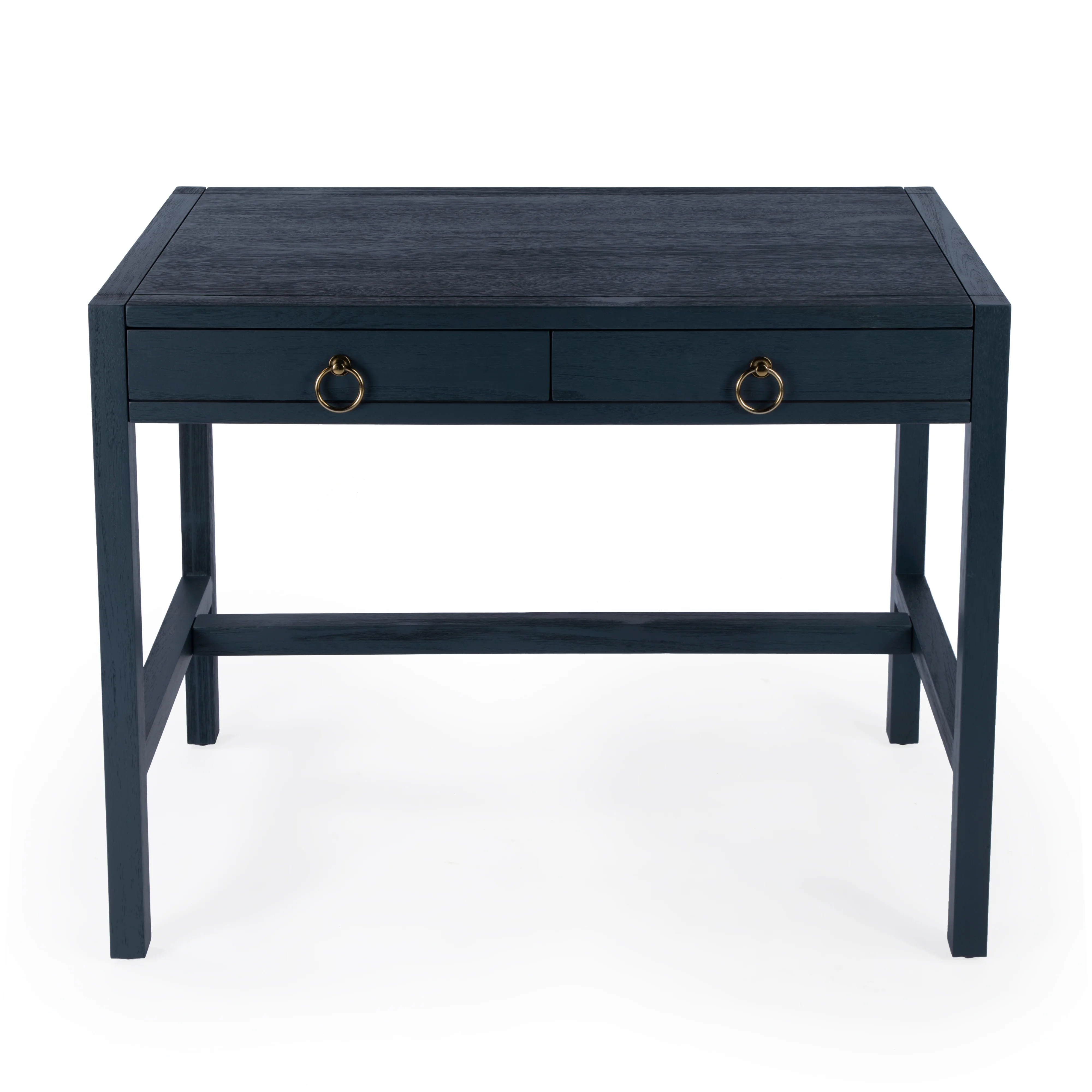 moreThe minimalist design of this stylish Butler Specialty Company desk makes it an ideal addition in any contemporary space. Crafted from acacia or pine wood solids and engineered wood products, it features two drawers with ring pulls, for a hint of glam, and ball bearing glides for easy opening and closing. Great for use in an office, living room or bedroom, and it is scaled for smaller spaces. Available in multiple finish selections.