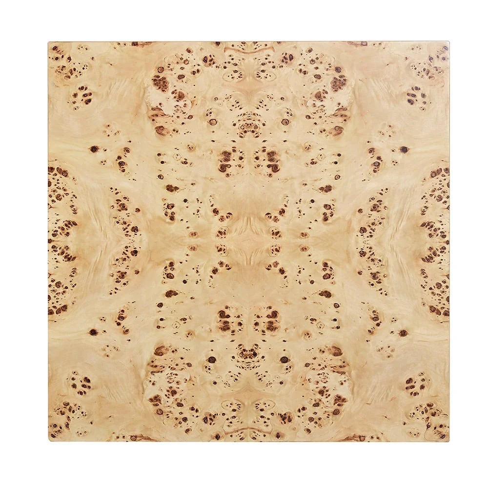 moreSquare side table with decorative arches and open storage. Natural Burl