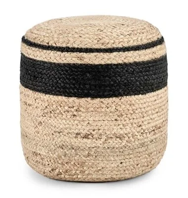 The Floor Cushions FARO JUTE NATURAL/BLACK POUF, made by Classic Home,