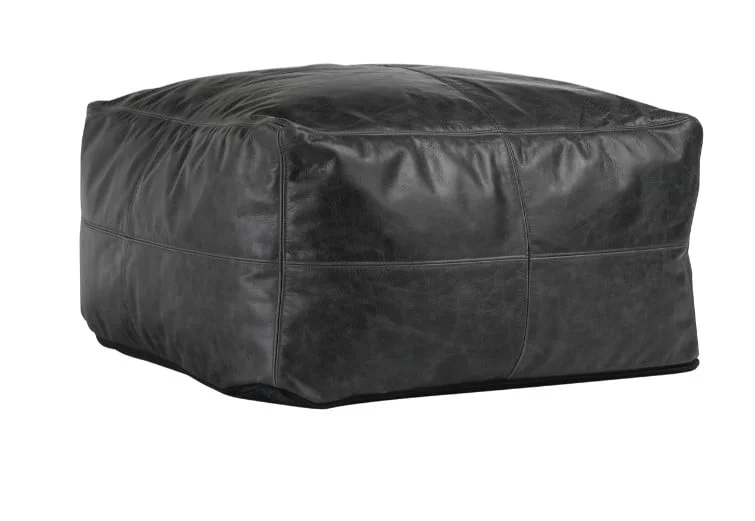 Leather Dexter Onyx Pouf