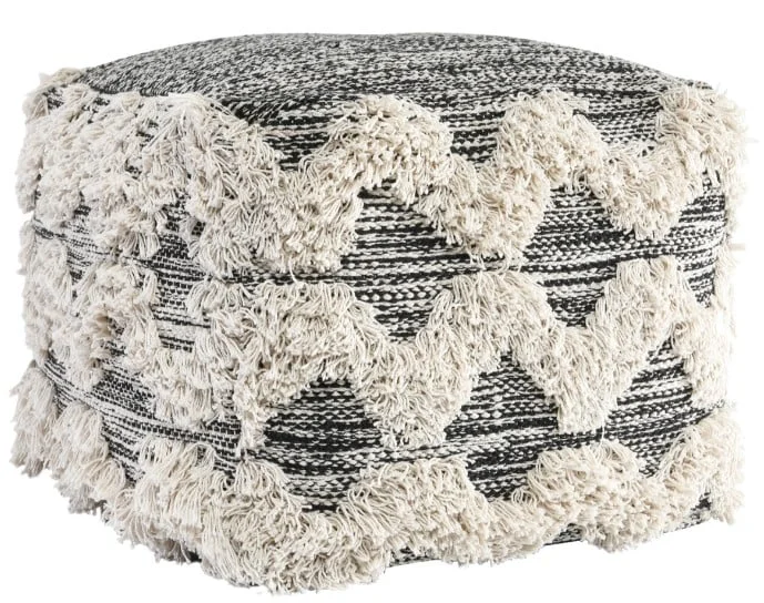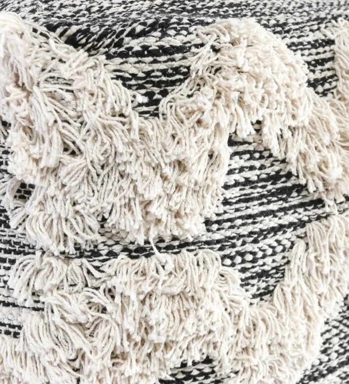 The Floor Cushions MAEVE BLACK/IVORY POUF, made by Classic Home,