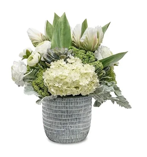 The Florals Parrot Tulip/White Floral Mix in Jupiter Pot, made by The Ivy Guild,