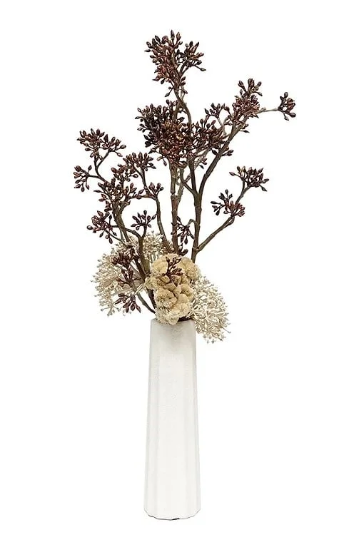 Tall Fluted Vase w/ Brown/Beige Skimmia