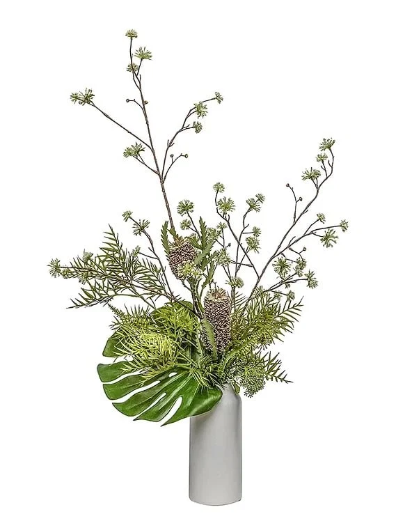 The Florals White Vase with Banksia/Monstera Leaf, made by The Ivy Guild,
