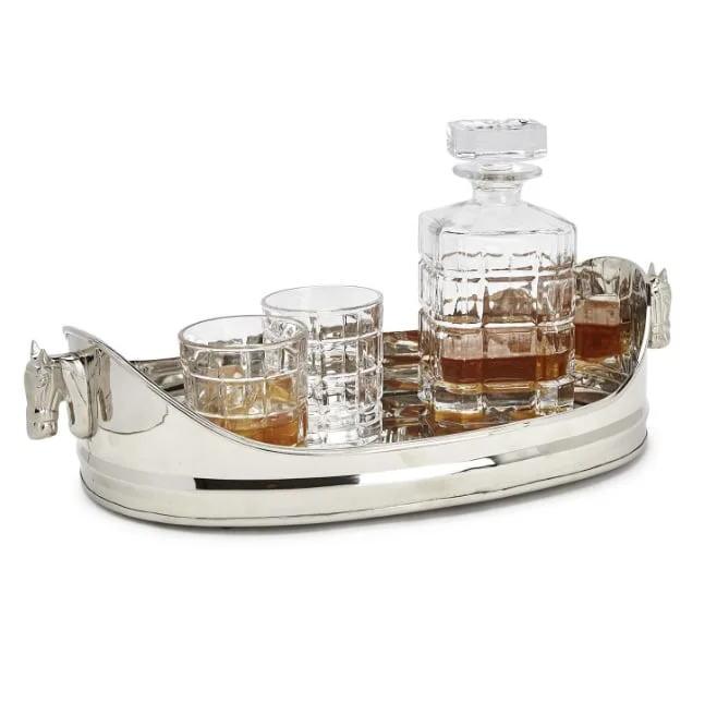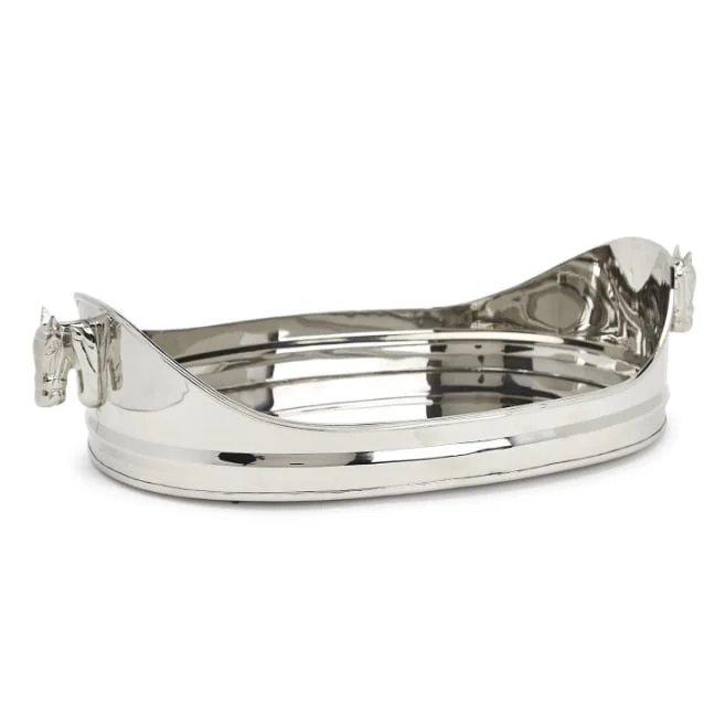 This tray is part of a series of Thoroughbred horse style trays. Crafted from stainless steel and finished with a nickel plating these trays are efficient and durable, yet elegant.