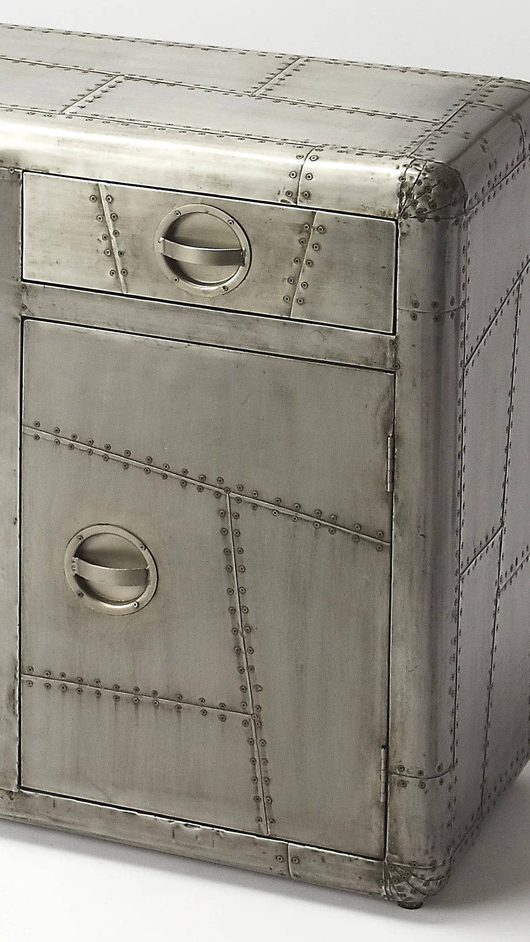The Industrial Chic Yeager Aviator Console Cabinet, made by Butler Specialty Company,