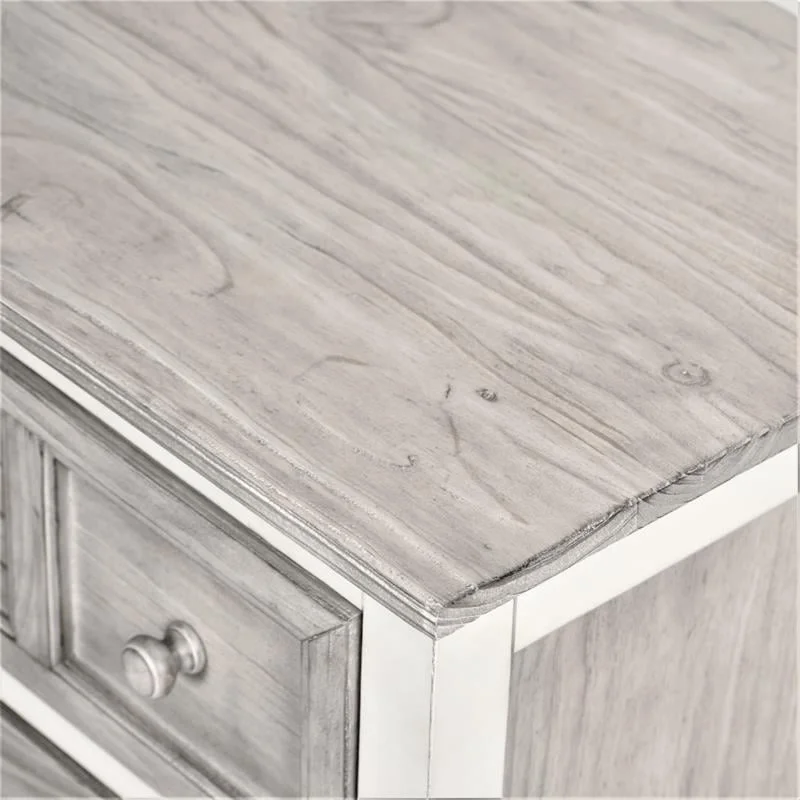 moreThe Islamorada collection has an elegant two-tone combination. The grey finish is the result of a multi-step process that lightly distresses the wood creating a beautiful depth of color and texture, complemented by gently-glazed white on the frame to give your room a character like no other!