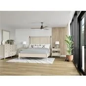 - Custom designed hardware in an aged bronze finish Multistep blonde finish for a casual vibe