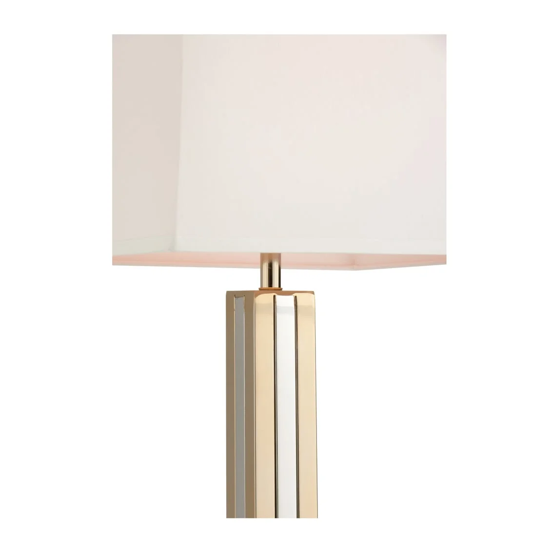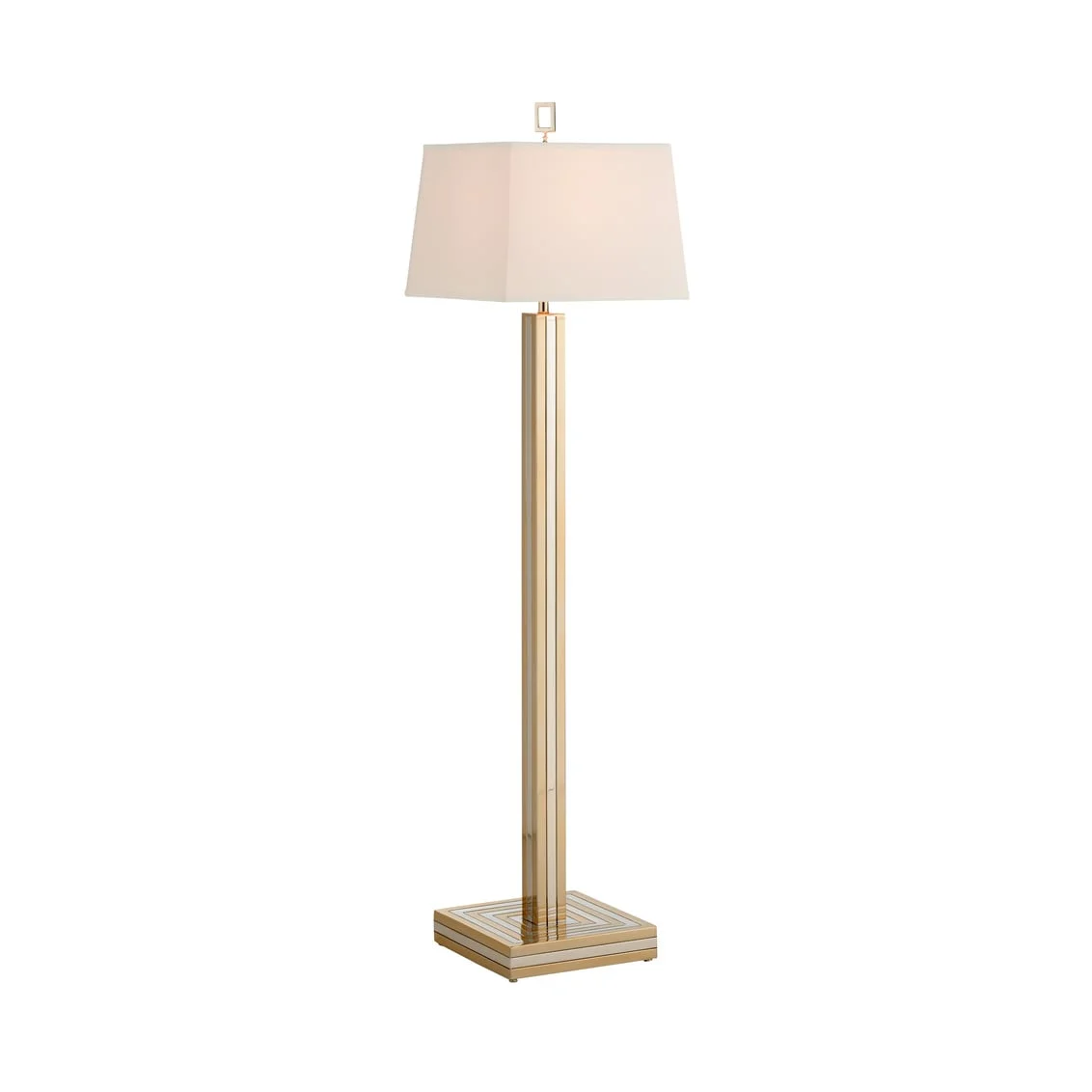 moreCreate a reading nook or bring light to dark corners of your room with gold dust floor lamp. Alternating rows of polished brass and nickel combine to create this stunning floor lamp. Topped with a matching finial and off white shade, this lamp will enhance any design style.