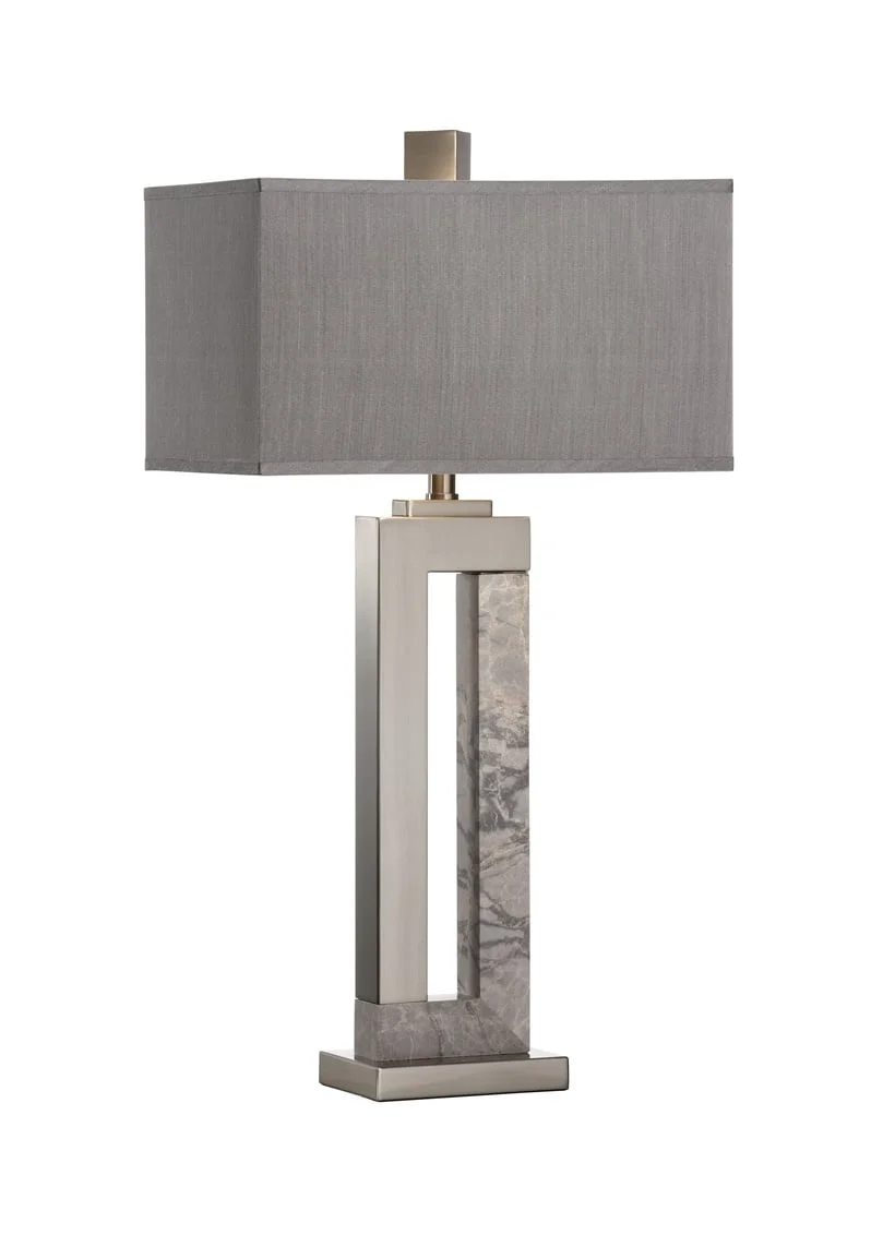 Gray marble and brushed nickel lamp with brushed nickel mounting