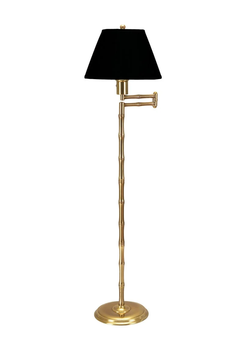 moreBrass bamboo swing arm floor lamp with antique finish. (Swing arm extends 18")