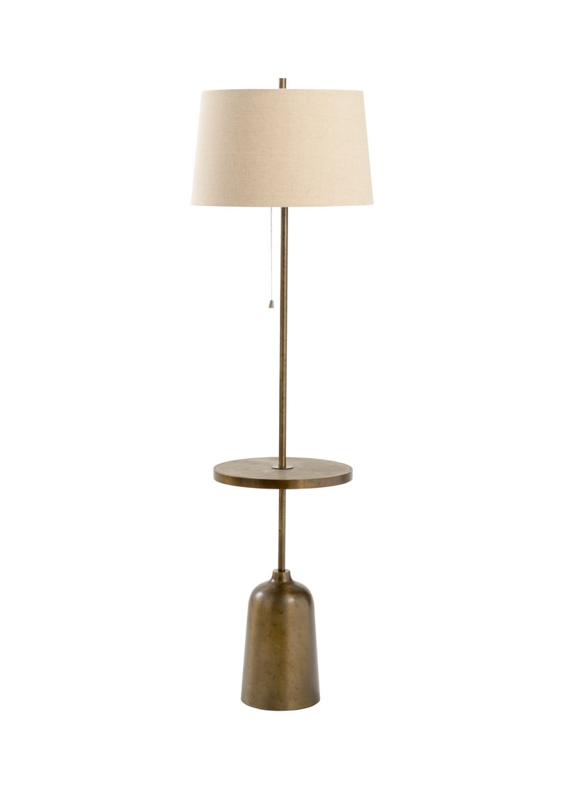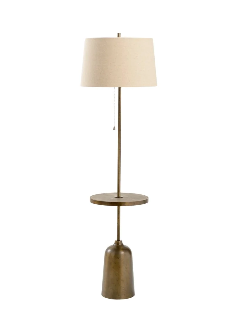 moreRustic modern floor lamp with stained concrete table top and a bronze finished base. Table top height is 24"h.