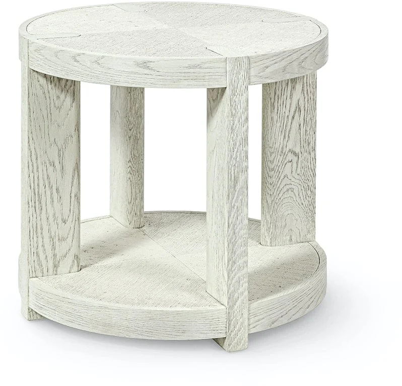 moreSolid oak hardwood frame featuring a raffia inlay tabletop and bottom shelf all in a whitewash finish. Coordinates with the Astoria collection.