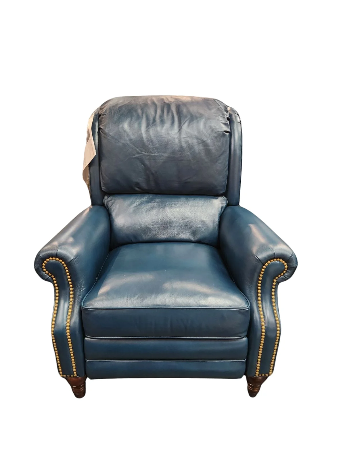 This version of the Powell Power Recliner modernizes a traditionally styled recliner. With the dark blues and greens of the Document Ocean Class 3 Leather to the Mahogony Distressed finish on the feet, the standard A Hancock 1/2" Nail Trim tying together the entire look for any modern setting.