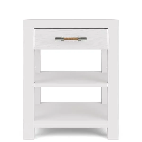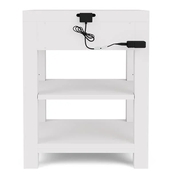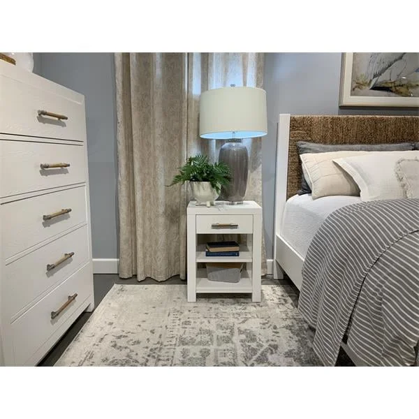moreGet ready for bed with a 1-Drawer Nightstand that's equally both convenient and stylish. The Contemporary 1-Drawer Nightstand is perfect for those looking to add a modern coastal vibe to the bedroom, sporting a stunning White Caps finish with custom designed two piece hardware on the handles. In addition to its good looks, this Nightstand also comes with dual USB and USB-C charging ports in the back, letting you keep your devices charged and powered as you drift off into perfect sleep.