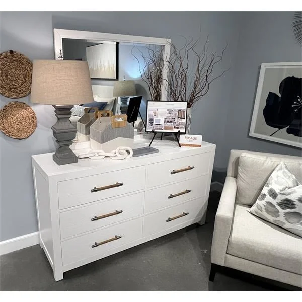 The Rosalie Contemporary 6-Drawer Dresser with Felt-Lined Top Drawers, made by Riverside Furniture,