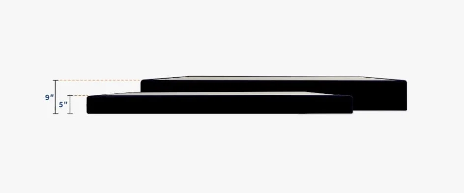 Comfort: Our foundations are available in a 9” height that matches a traditional box spring and a lower 5” profile for a more modern look that will easily fit through more narrow stairways.
