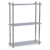 moreIn the Hollywood Regency style, our Carmel wide shelf features polished nickel bamboo shaped turnings and three sleek lucite shelves.