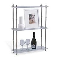 Designed to be attached on the wall or as a floor accent shelf its perfect for a display of towels in the bath. The bar area for stemware--and tts even scaled for bottles of wine. We also love to display family photos and accents in a hallway. Truly dramatic and versatile.