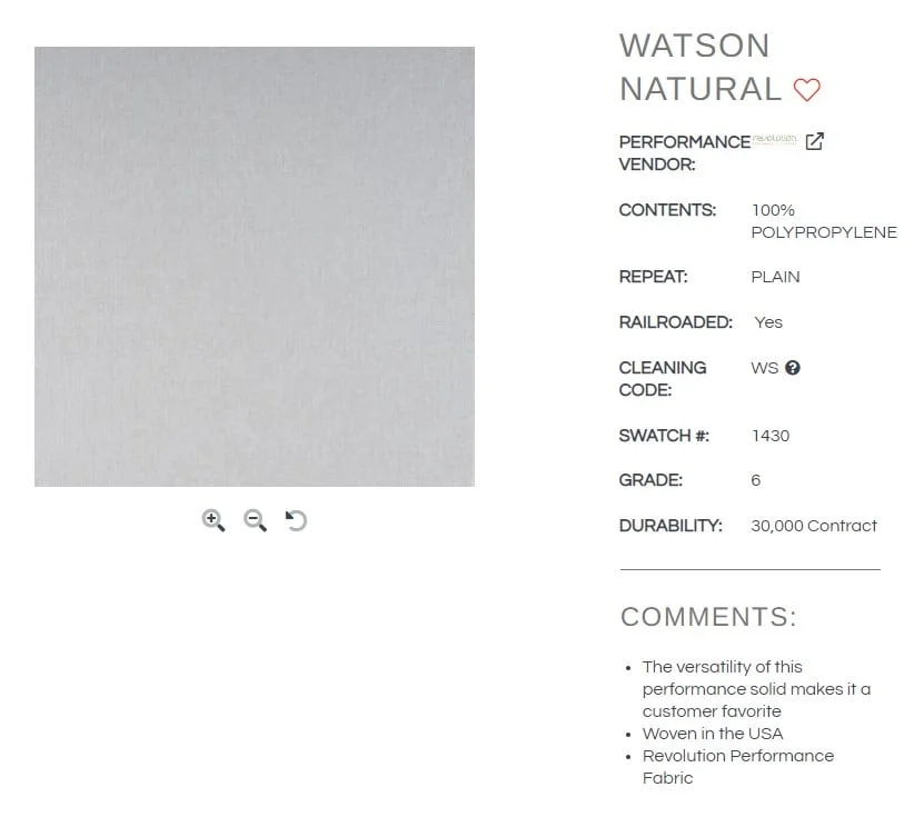 FABRIC- WATSON NATURAL(Revolution Performance Fabric)