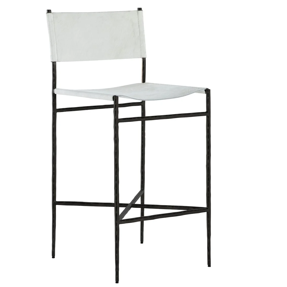 The Landon Bar Stool with chic tapered legs, crisscross stretchers, and ivory hair-on-hide seat and back panels is a luxe take on the director's chair.