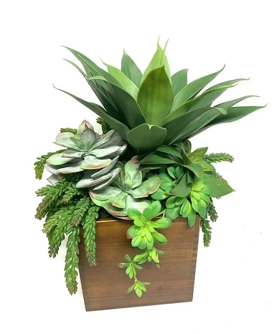 The Succulents Agave/Succulents in LG Wood Box, made by The Ivy Guild,